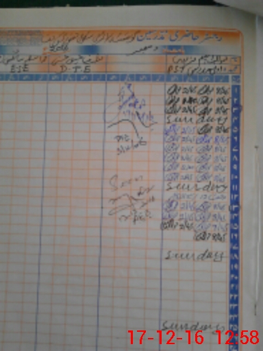 | CNIC | Full Name | Designation | R/C | Absence During Last Calender Month |