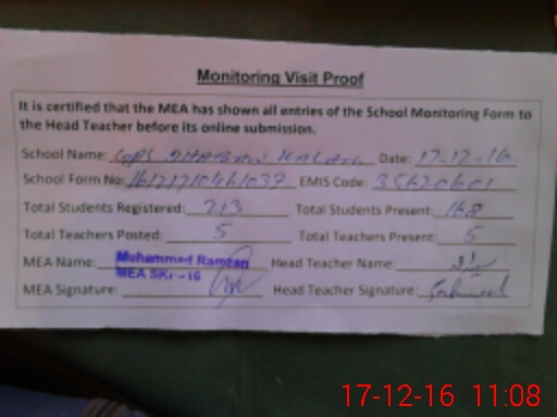 | EMIS Code: 35620601 | Name of School: GPS DHABAN KALAN CHAK NO.13/RB | |||