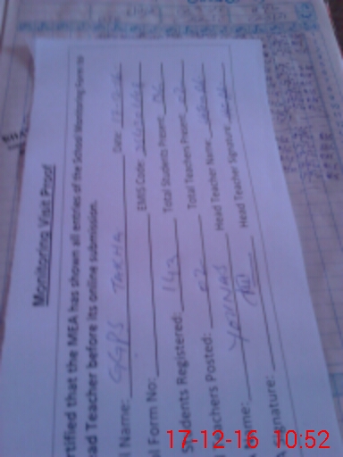 | Attendance Register | Head Teacher | MEA with School | Visit Proof |