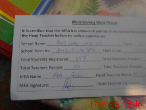 | EMIS Code: 35430021 | Name of School: GHS CHAK NO 7 UCC | |||