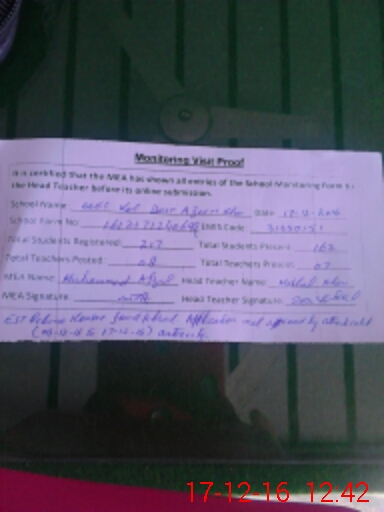 | Certified that this School was Inspected by the Undersigned MEA/DMO Today and the Information Stated Above is as Per Record. | |||||