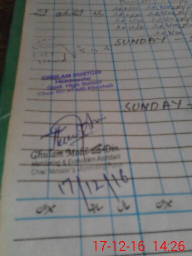 | Name: Mu**** Al**** Designation: (School Headmaster's/Headmistress's) PST/ Phone/Cell Number: 03**** |