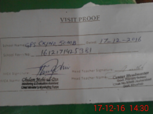 | EMIS Code: 38210261 | Name of School: GPS CHAK NO 50 MB | |||