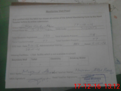 | Certified that this School was Inspected by the Undersigned MEA/DMO Today and the Information Stated Above is as Per Record. | |||||