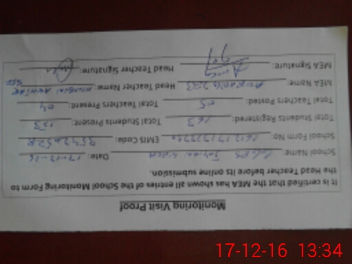 | Attendance Register | Head Teacher | MEA with School | Visit Proof |