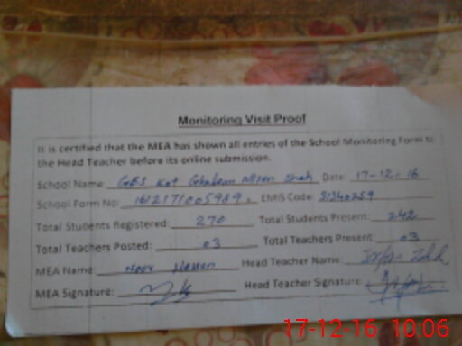 | EMIS Code: 31340259 | Name of School: GES KOT GHULAM MIRAN SHAH | |||