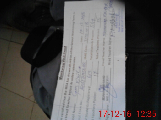 | Attendance Register | Head Teacher | MEA with School | Visit Proof |