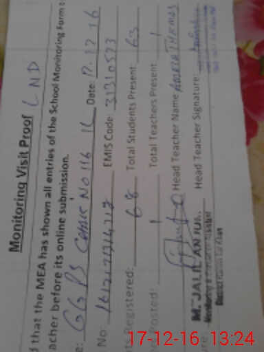 | Certified that this School was Inspected by the Undersigned MEA/DMO Today and the Information Stated Above is as Per Record. | |||||