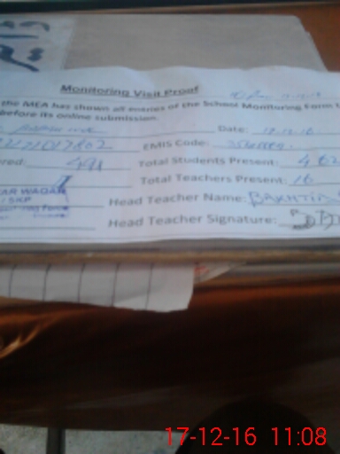 | Attendance Register | Head Teacher | MEA with School | Visit Proof |