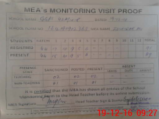 | EMIS Code: 36420475 | Name of School: GGPS 42-A/10-R, KACHA KHUH | |||