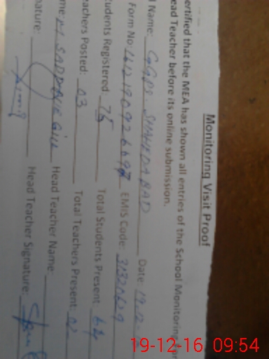 | Certified that this School was Inspected by the Undersigned MEA/DMO Today and the Information Stated Above is as Per Record. | |||||
