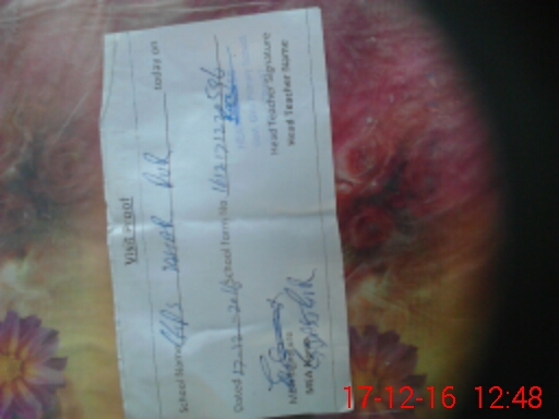 | School Visited by School Health & Nutrition Supervisor (No. of Visits) | 1 | Name1: | M Sajid | Name2: | |