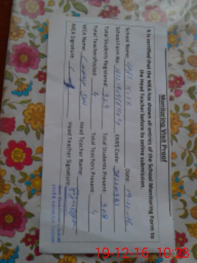 | Certified that this School was Inspected by the Undersigned MEA/DMO Today and the Information Stated Above is as Per Record. | |||||