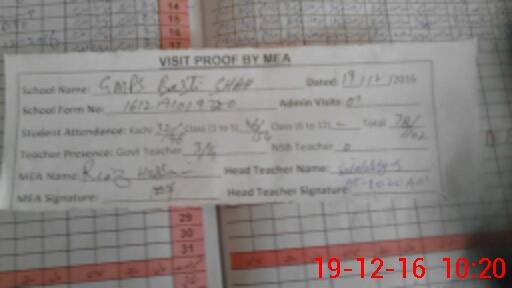 | Attendance Register | Head Teacher | MEA with School | Visit Proof |