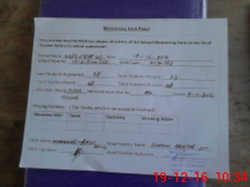 | Certified that this School was Inspected by the Undersigned MEA/DMO Today and the Information Stated Above is as Per Record. | |||||