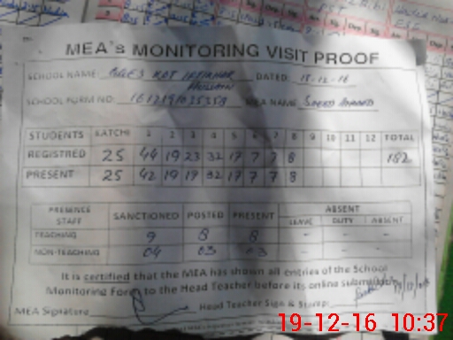 | Certified that this School was Inspected by the Undersigned MEA/DMO Today and the Information Stated Above is as Per Record. | |||||