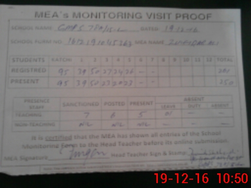 | Certified that this School was Inspected by the Undersigned MEA/DMO Today and the Information Stated Above is as Per Record. | |||||