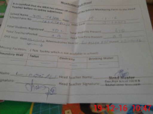 | Attendance Register | Head Teacher | MEA with School | Visit Proof |