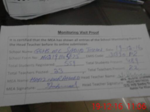 | Certified that this School was Inspected by the Undersigned MEA/DMO Today and the Information Stated Above is as Per Record. | |||||