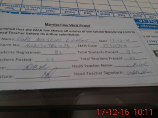 | EMIS Code: 35410706 | Name of School: GPS MUSLIM LEAGUE VILLAGE | |||