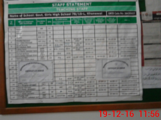 | EMIS Code: 36420657 | Name of School: GGHS 78/15-L, KHANEWAL | |||