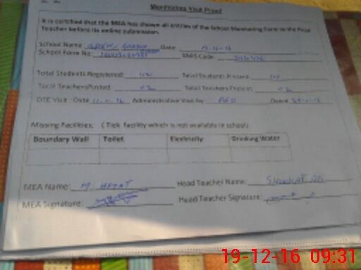 | Attendance Register | Head Teacher | MEA with School | Visit Proof |