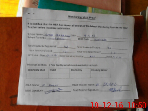 | Attendance Register | Head Teacher | MEA with School | Visit Proof |