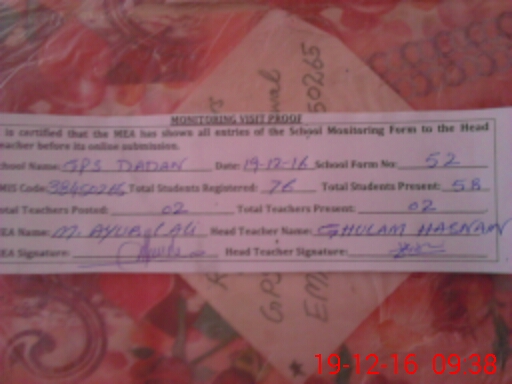 | EMIS Code: 38450265 | Name of School: GPS DADAN | |||
