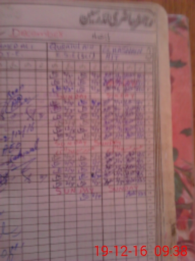 | CNIC | Full Name | Designation | R/C | Absence During Last Calender Month |