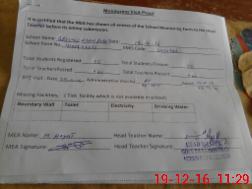 | Attendance Register | Head Teacher | MEA with School | Visit Proof |