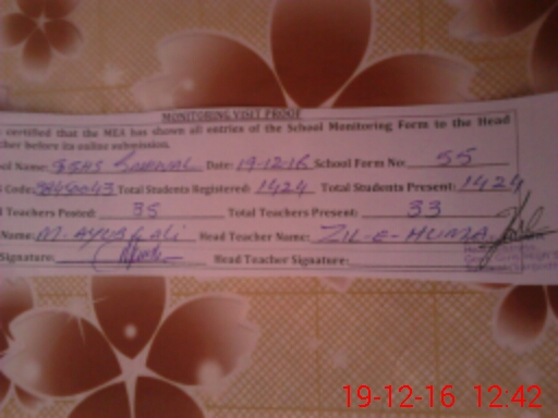 | EMIS Code: 38450043 | Name of School: GGHS SAHIWAL | |||