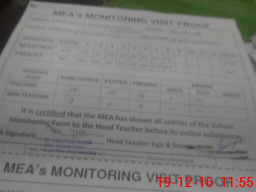 | Certified that this School was Inspected by the Undersigned MEA/DMO Today and the Information Stated Above is as Per Record. | |||||