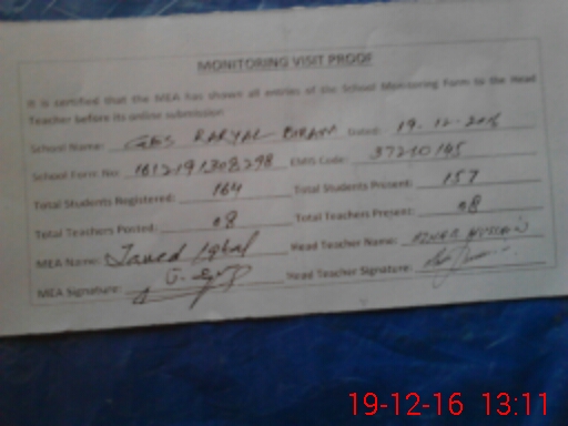| Certified that this School was Inspected by the Undersigned MEA/DMO Today and the Information Stated Above is as Per Record. | |||||
