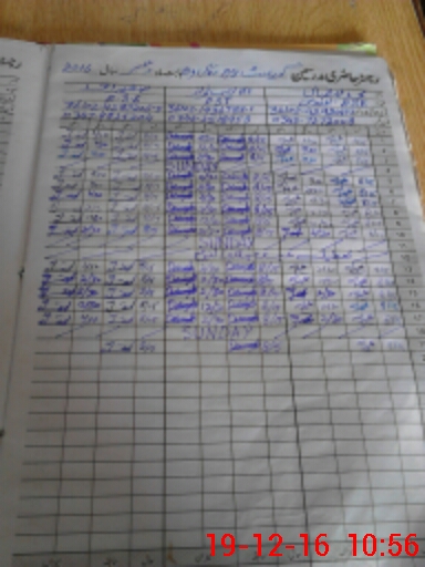 | CNIC | Full Name | Designation | R/C | Absence During Last Calender Month |