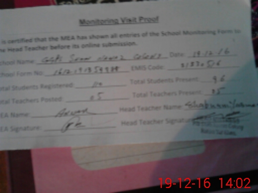 | Attendance Register | Head Teacher | MEA with School | Visit Proof |
