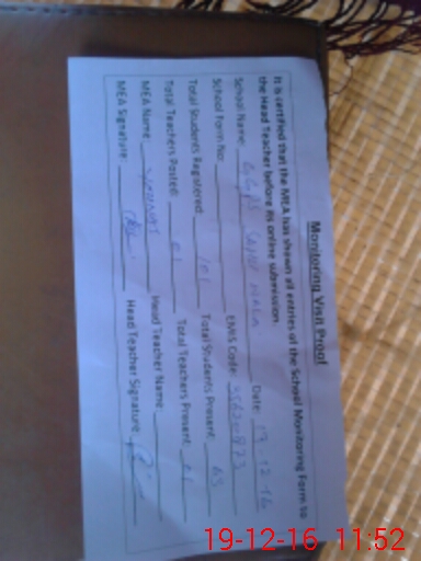 | Attendance Register | Head Teacher | MEA with School | Visit Proof |