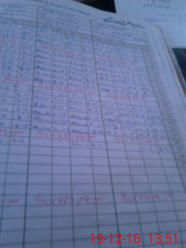 | CNIC | Full Name | Designation | R/C | Absence During Last Calender Month |