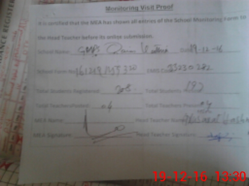 | EMIS Code: 33230282 | Name of School: GPS QAIM KATHIA | |||