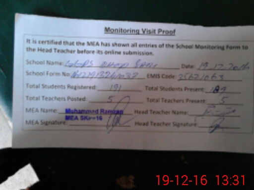 | Certified that this School was Inspected by the Undersigned MEA/DMO Today and the Information Stated Above is as Per Record. | |||||