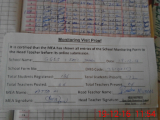 | Certified that this School was Inspected by the Undersigned MEA/DMO Today and the Information Stated Above is as Per Record. | |||||