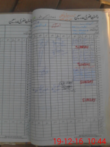| CNIC | Full Name | Designation | R/C | Absence During Last Calender Month |