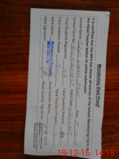 | Certified that this School was Inspected by the Undersigned MEA/DMO Today and the Information Stated Above is as Per Record. | |||||