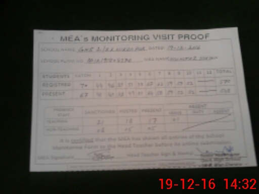 | Attendance Register | Head Teacher | MEA with School | Visit Proof |