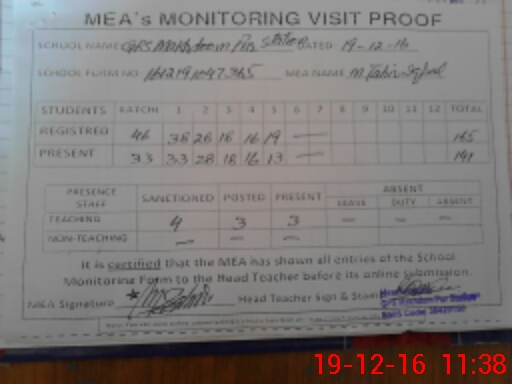 | Certified that this School was Inspected by the Undersigned MEA/DMO Today and the Information Stated Above is as Per Record. | |||||