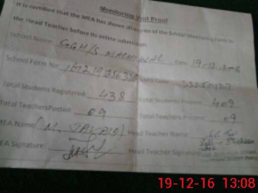 | Certified that this School was Inspected by the Undersigned MEA/DMO Today and the Information Stated Above is as Per Record. | |||||