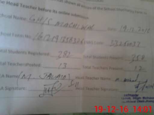 | EMIS Code: 33250037 | Name of School: GHS MACHI WAL | |||