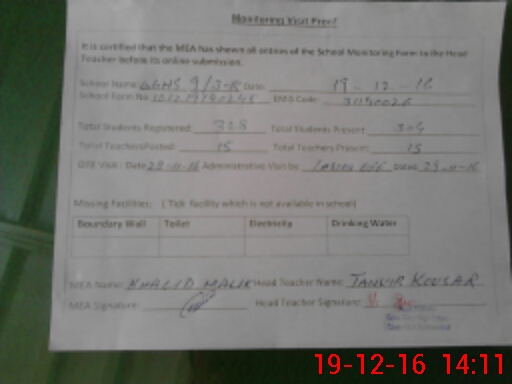 | EMIS Code: 31140026 | Name of School: GGHS CHAK NO 9/3-R | |||