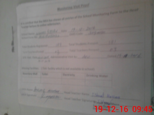 | Attendance Register | Head Teacher | MEA with School | Visit Proof |