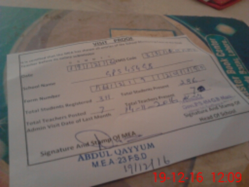 | Certified that this School was Inspected by the Undersigned MEA/DMO Today and the Information Stated Above is as Per Record. | |||||