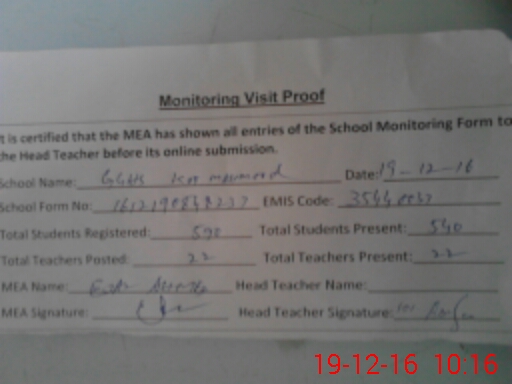 | EMIS Code: 35440037 | Name of School: GGHS KOT MAHMOOD | |||